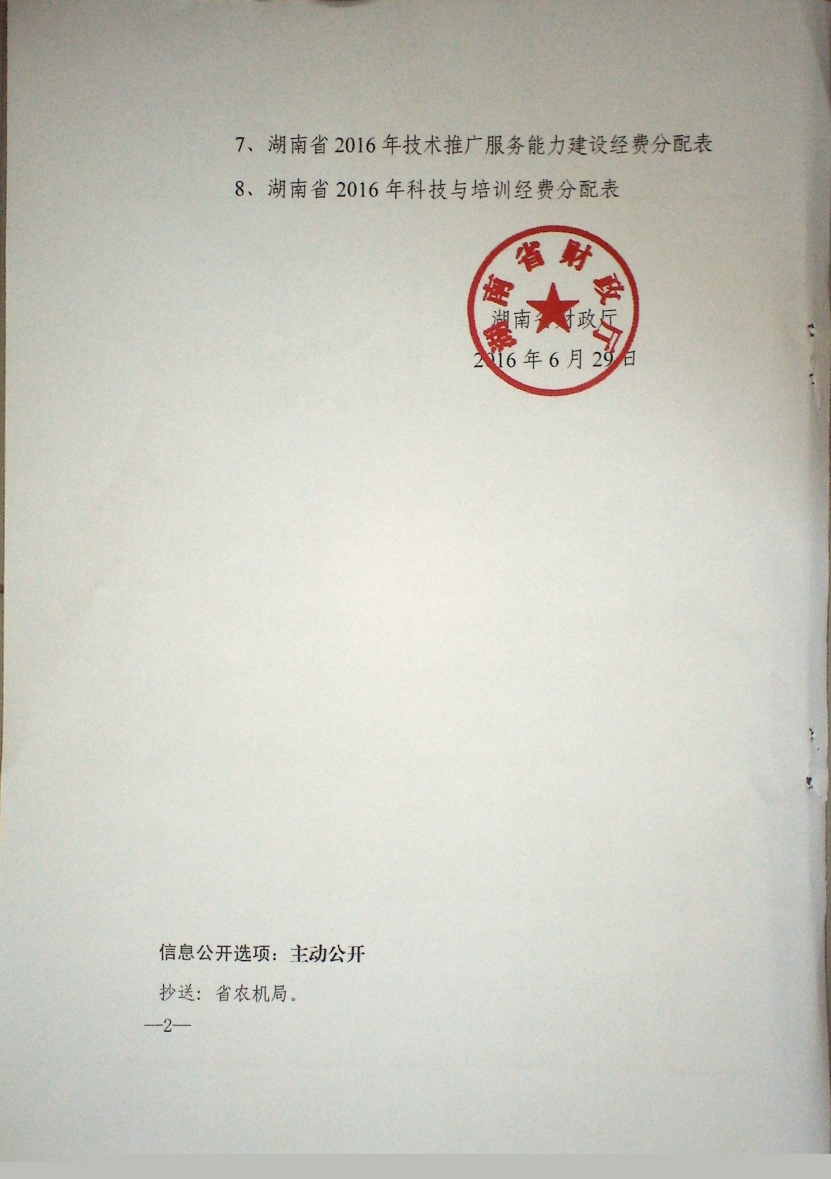 湖南省财政厅关于下达2016年度农机示范推广及服务能力建设专项资金的通知